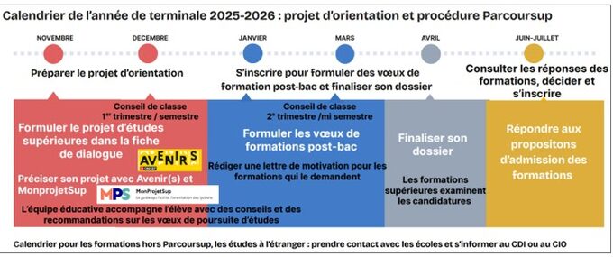 Orientation postbac calendrier annuel terminale 2025/2026 et liens utiles